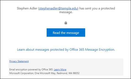 If you send a message to someone outside of Temple, the recipient will first be prompted to read the message.